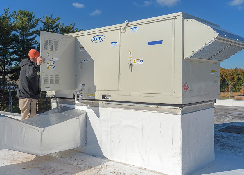 The project showcased AAON’s unmatched flexibility and innovation — featuring compact footprints, total energy recovery wheels for high outside air applications, and multiple system configurations. Cooling was provided by packaged DX systems with modulating hot gas reheat for dehumidification or chilled water cooling where available. Heating solutions included hot-water coils tied to the schools’ hot-water loops, and dual-fuel systems (air-source heat pump + natural gas) in locations without hot water.